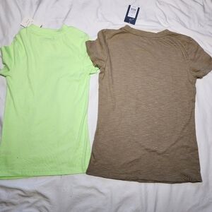 A New Day & Universal Thread Brown and Green V-Neck Women's T-Shirts Size XS