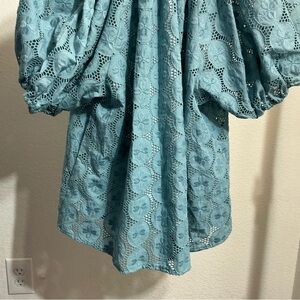 Never a Wallflower Gathered V-Neck Top Beryl Blue Eyelet Size XS