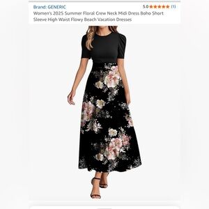 Black Floral Short Sleeve Midi Dress ** NEW, NEVER WORN**