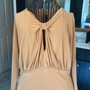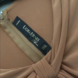 The Pinup Couture /Laura Burns, 2016 edition, mustard colored Malia Blouse is a stylish top featuring a ruched design and a charming tie front. With its 3/4 sleeves, this blouse offers a perfect blend of elegance and comfort. The vibrant mustard hue adds a pop of color, making it a standout piece for any occasion, size xl, good condition.