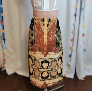 Vivienne Tam 90s Kuan Yin Buddha cotton Velvet archival Runway Skirt▪️ rare LG