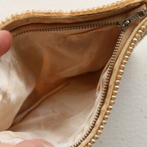 Excellent Vintage condition. Interior is quite clean. Exterior as well. There are a couple of missing pearl beads at the zipper corner, and it looks like one missing from a bottom corner.