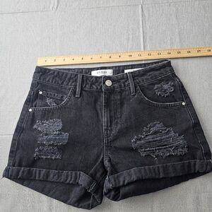 Guess Black Cuffed Distressed Boy Fit Jean Shorts Size 25 Mid Rise