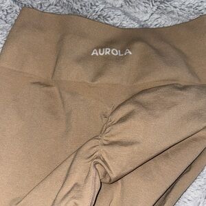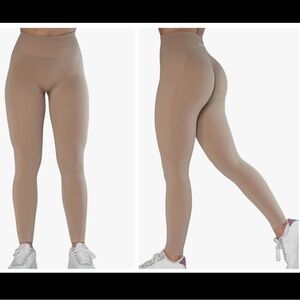 AUROLA seamless scrunch leggings in tan/natural. Perfect for workouts and yoga.