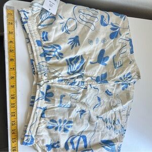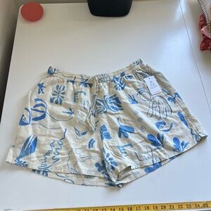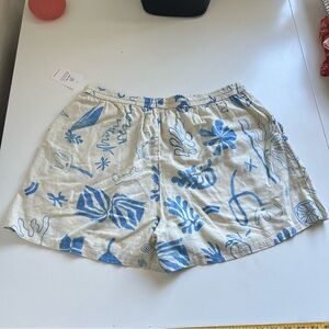 Lucky Brand The Beach Linen Short Blue Coral Print Pants Size S NWT