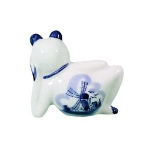 Delft Blue Style Ceramic Frog Figurines Set of 2 Blue White Windmill Design
