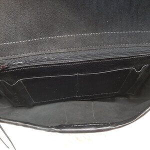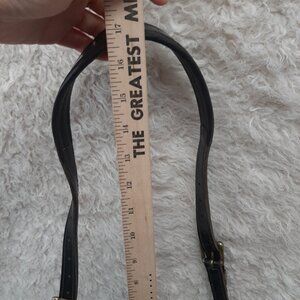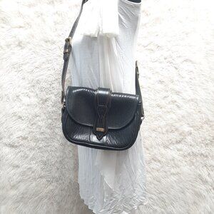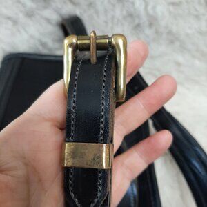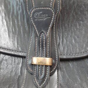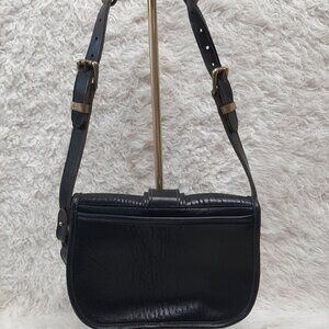 Check out this Vintage Bag by Calder of Canada Black Pebbled Leather Shoulder Bag w/ Solid Brass Buckle in great pre-owned condition. some wear and minor oxidation stains on the brass hardware, the stiff heavy duty leather still in very great shape, no rips or stains on the leather and the lining the bag is very handy perfect for any occasion.