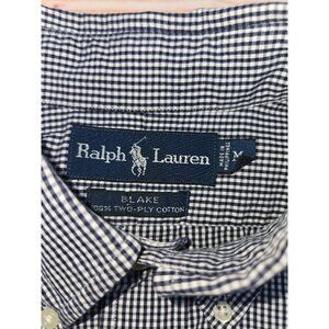 This classic Ralph Lauren shirt offers a polished and professional look. Featuring a navy and white checkered pattern and red polo logo, it's crafted from premium two-ply cotton for durability and comfort. Ideal for office wear or formal occasions.