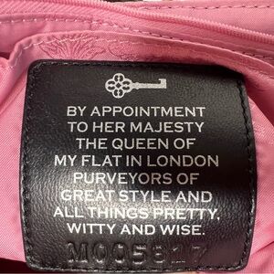 Beautiful pink lining, and a fun silver quote accent on the inside flap. Crown