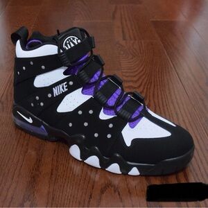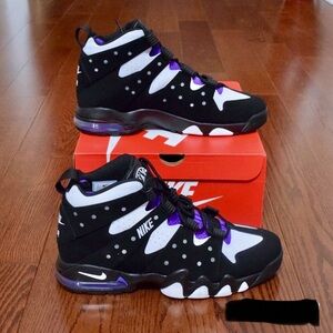 Experience the perfect blend of style and performance with these Nike sneakers, featuring a striking black and purple color scheme. Designed with the iconic Nike Air cushioning system, these shoes offer exceptional comfort and support. The dynamic silhouette and high-top design provide both a modern look and enhanced ankle stability, making them ideal for everyday wear.