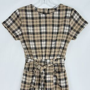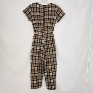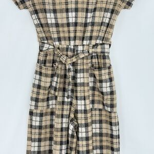 ZARA GIRLS PLAID Brown belted jumpsuit coversuit Size 10 Short Sleeve