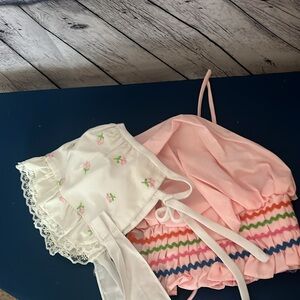 Vintage ~ Adorable pink and white kids bonnet set perfect for any occasion. Features a charming design with delicate lace and colorful accents.