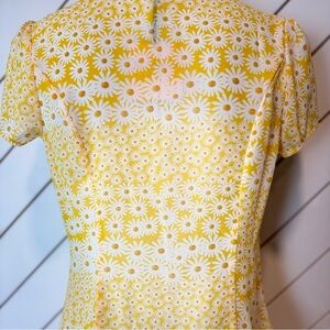 SMAK POLOUR - Yellow & White Daisy Collared Bow Blouse - Size S