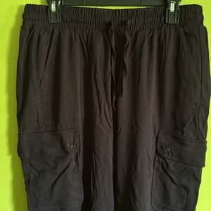 NWT Torrid Black Relaxed Fit Stretch Mid-Rise Jogger Cargo Pants Size 0 M/L 12. Elastic waist with tie. Four front pockets.