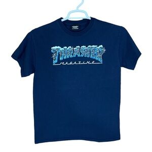 Thrasher Magazine T-shirt Mens Medium Skater Punk Cali Casual Blue Icy Classic. No holes no stains