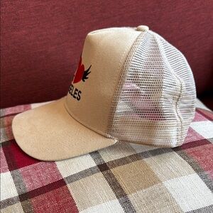 Trendy tan cap with 'I Love Los Angeles' design. Features a red heart and black lettering. Brand new & never worn.