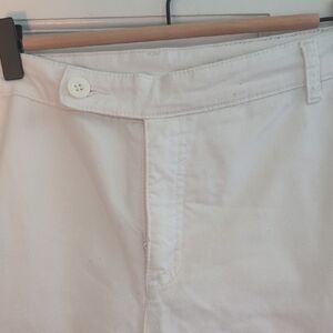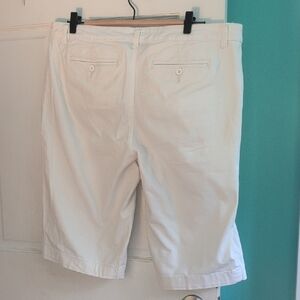 These women's shorts are in great condition. They are white with side pockets and a flat front. Button enclosure and zipper. Size 16 from Macy's Style & Co.