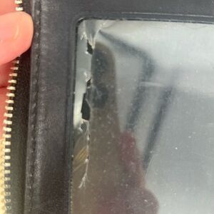 Normal wear - does have cracked id screen and some surface dirt on logo and some rubbed edges