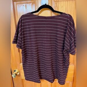 This Old Navy top features a relaxed, boxy fit in a vibrant red & white hue, complemented by a classic crew neckline and short sleeves. The lightweight fabric ensures comfort, making it an ideal choice for casual outings. Thin white stripes add a touch of style to this everyday essential.