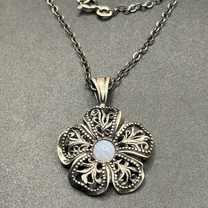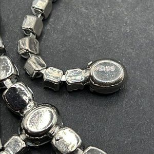 Vintage Weiss silver tone 16” scalloped edge milk glass and rhinestone necklace. Elegant design that lays beautifully along neckline.