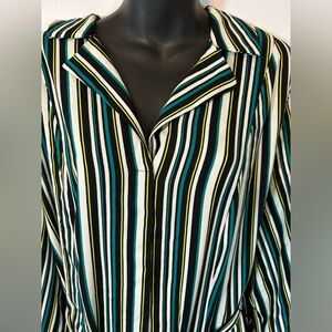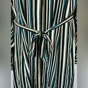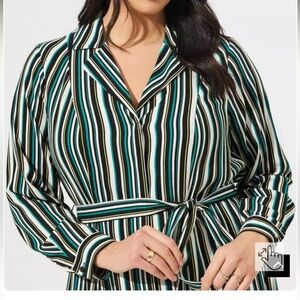 Long sleeve striped dress from Torrid with buttons down the front and a removable waist tie.