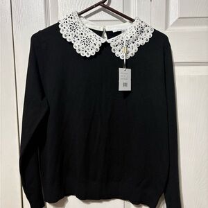 Chic black top by Sioni Milano with elegant white trim. Ideal for stylish occasions.