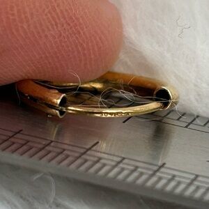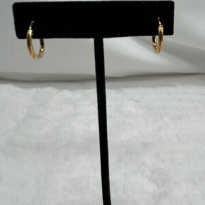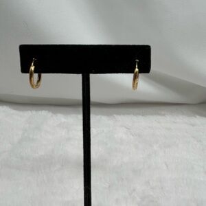 These elegant gold hoop earrings add a touch of sophistication to any outfit. Perfect for any occasion. Please note one of the enclosure wires is bent a little bit it still works just fine.