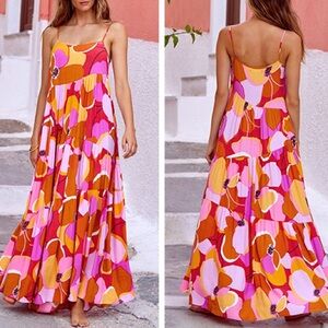Step into elegance with the Vince Camuto Red and Blue Halter Maxi Sundress, perfect for a wedding guest or cocktail occasion. This sleeveless dress features a vibrant floral pattern with a halter neckline, offering a chic and sophisticated look. The flowing maxi length and sundress style ensure comfort and grace, making it an ideal choice for resort wear. Crafted with attention to detail, this dress embodies the essence of effortless style.