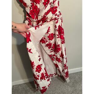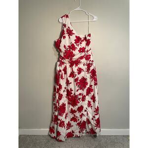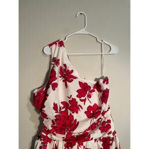 Abercrombie & Fitch Red and White Floral One Shoulder Cutout Maxi Dress Size XL