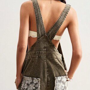 Army Green Casual Womens Boho Woven Loose Washed Patchwork & Lace overalls pants
