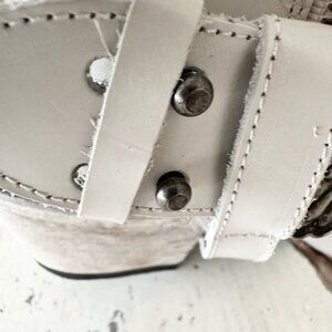 Condition: These are pre-owned boots. The soles have light wear. One of the straps needs new screws for the belt. Please see all of the pics, as I tried to show the issues. These will come with both options for the straps. They will come with a boot box and fit true to size.