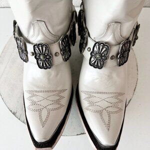 Lane The New Mrs. Womens Cowboy Boots in Pearl White leather with a Western Snip Toe and 12" Tall Shaft. These come with (2) options for heel straps - The New Mrs. and then a plain option so you can wear them going forward.