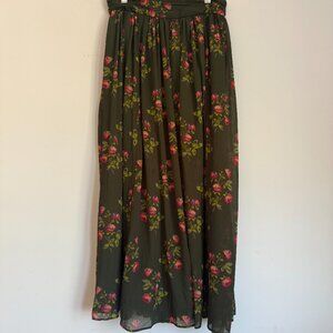 J. Crew | Point Sur Olive Green Floral Maxi Skirt in Crinkle Chiffon Size 0