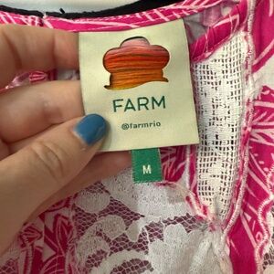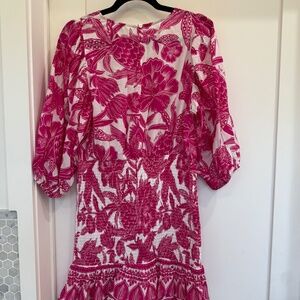 Farm Rio pink and white lace puff sleeve mini dress. Worn once. Excellent condition!
