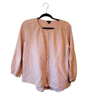 Size XL. Blouse is missing the tassels that were on the neckline, but in otherwise great pre-owned condition. This does not effect the wear.