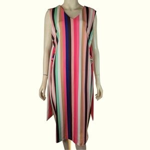 Fabric Type=Knit, Zippered, Knee Length, Striped Pattern, Sleeveless, Color=Pink Striped, Multicolored. Material Spandex. Neckline= V-Neck, Closure=Zip, Designer=New York & Co, Occasion=Business, Casual, Travel, Wedding. Wear = Near New!! Never Worn