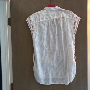 Anthropologie Maeve Cream embroidered Cap Sleeve Blouse