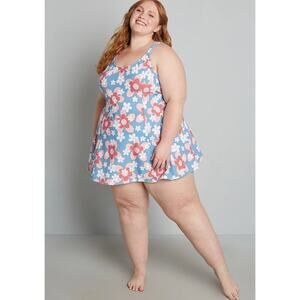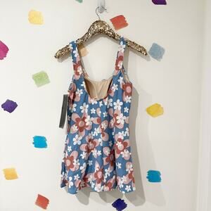 12 Modcloth Esther Williams Blue Floral One Piece Swimsuit NWT