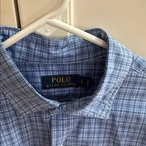 Polo by Ralph Lauren Men’s Blue Casual Plaid Button Down Shirt Sz L Like New!