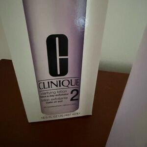 Clinique clarifying lotion in a sleek light purple bottle. Comes with a convenient pump.