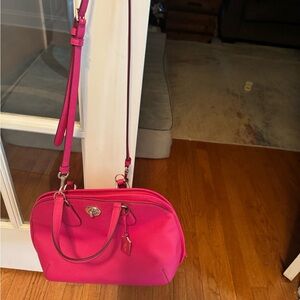 Coach Pink Leather Shoulder Bag with Gold Accents