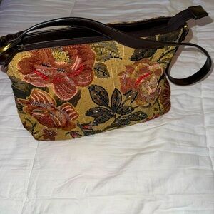 This is a beautiful vintage rose beaded tapestry purse it is unbranded not real leather causal handbag
