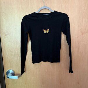 Urban Outfitters ruched black peasant crop top long sleeve S