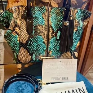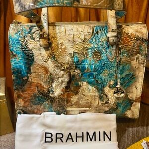 Elegant Brahmin bag with vibrant floral embossing. Features a stylish design and signature charm.