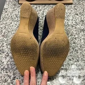 Navy blue Stuart Weitzman wedges. Size 7. Only worn a handful of times because they’re slightly too big for me.