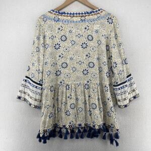 J.JILL Blouse M Boho Tasseled Tunic Embroidered