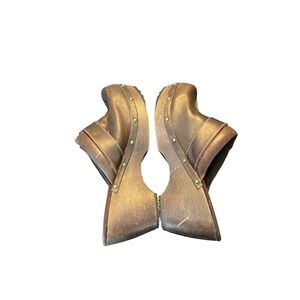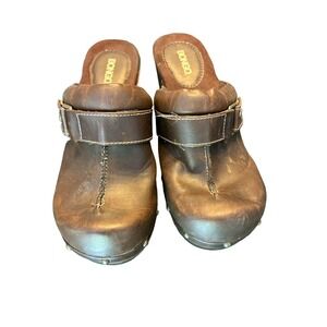 Bongo Brown Chunky Heel Platform Clogs Y2K Grunge Vintage 1990s Style Size 7