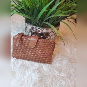 Vilenca Holland Women's Browm Leather Woven Credit Card Slots Organizer