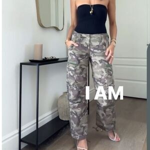 Our on-trend early 2000's-inspired mid rise utility pants in our elevated twill fabric, featuring adjustable interior waistband tie, that allows for a low or high rise look, utility flap and cargo-style pockets throughout and adjustable bungees at hem. Imported.