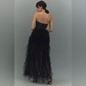 MAC DUGGAL Black Strapless Bustier Net Gown With Spiral Ruffles Size 6 Holiday